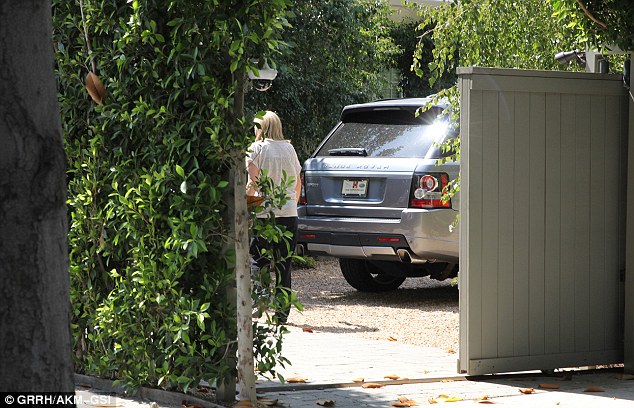 | Car remains: A vehicle reported to be Cory's Range Rover is still parked outside Lea Michele's Los Angeles house |